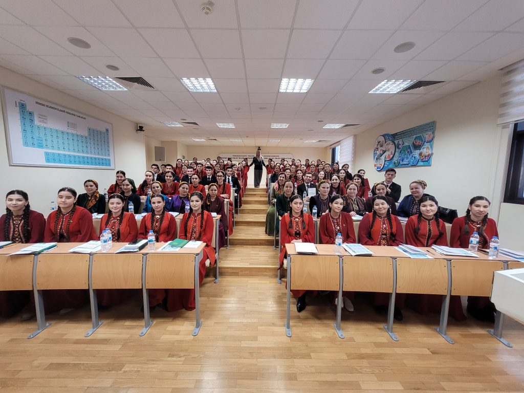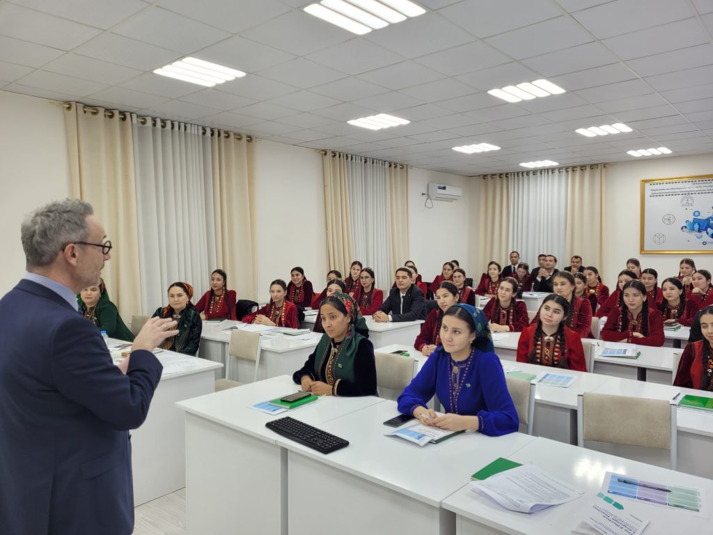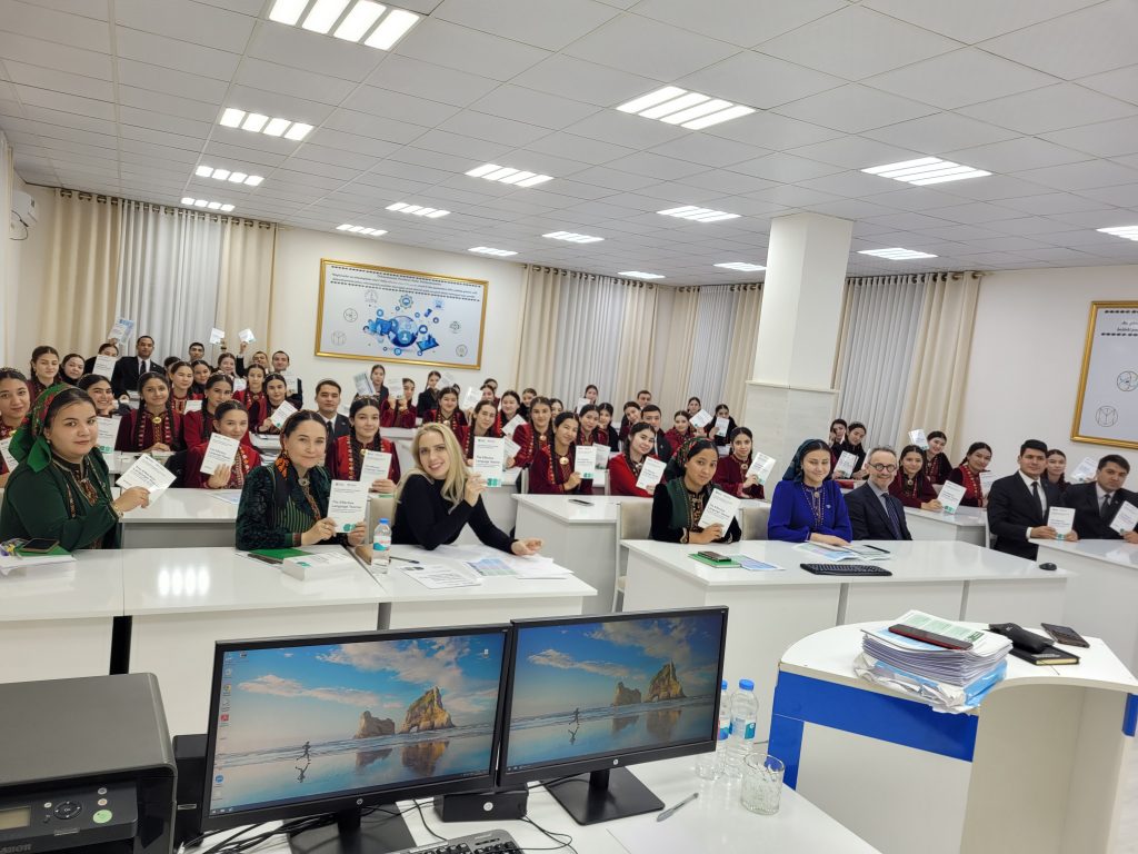 During the week of 20 January 2025, Professor Andrew Linn and Dr Anastasiya Bezborodova delivered interactive training workshops to 296 participants: 224 students (152 from MTSU and 72 from SSPI) and 72 teachers (10 from MTSU, 15 from SSPI, and 47 from IUHD). The feedback was overwhelmingly positive, with particular appreciation from SSPI in Türkmenabat, where international CPD visits are less common. The workshops played a key role in informing the final programme materials. The resulting resource pack, printed as a CPD programme book and also available digitally on this website, enriched PRESETT programmes and supported INSETT CPD.